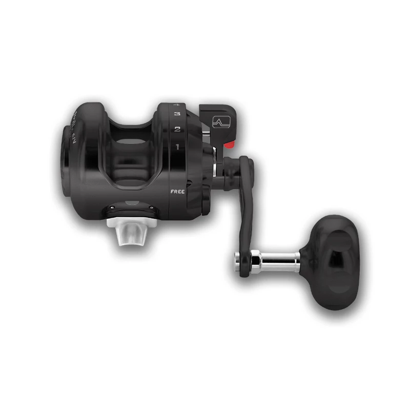 Gorilla 6V integrated drag-preset and drag side plate with ergonomic design. Single disc brake able to be set up to 20 lbs with a guaranteed free spool, an ergonomic operating lever that, combined with the aluminum power handle, keeps the arm at maximum thrust position. The power waste is minimized and, combined with the gear couple, allows to exploit it to the best and make line rewinding easier, faster and more comfortable (even with a fast retrieve ratio 6.2:1).