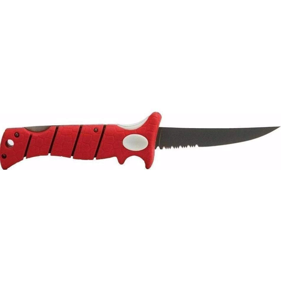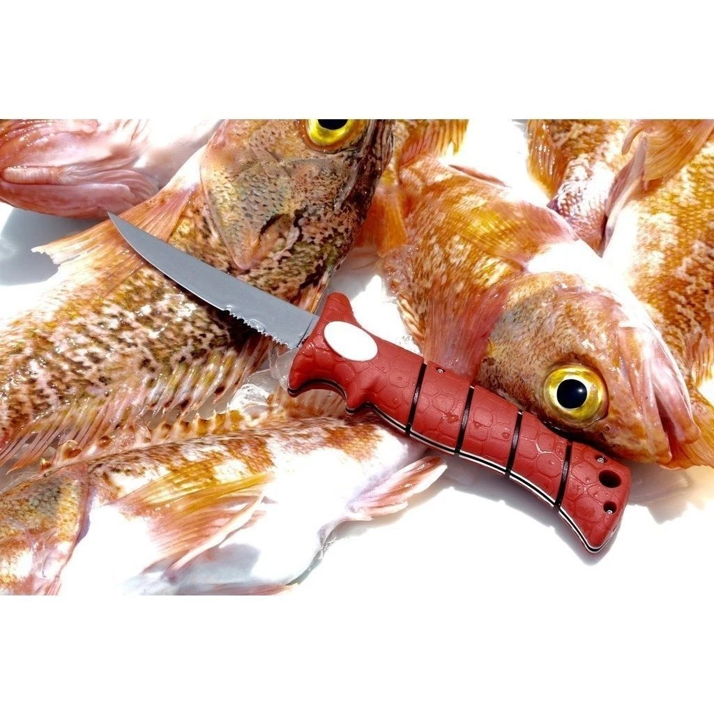 Every fisherman needs this folding fillet knife as their good luck charm. You will want this with you wherever you go. Its folding abilities make it easy to store and quick to access. Its 5-inch Teflon coated and titanium bonded and secure lock-back design keeps it safe and user-friendly. It has a 1.5-inch serrated cutting edge and its 6-inch famous red non-slip-grip handle. This full tang constructed knife is excellent for your everyday fishing trips. If you are not sure what you will catch, this knife is handy to have for whatever comes your way.