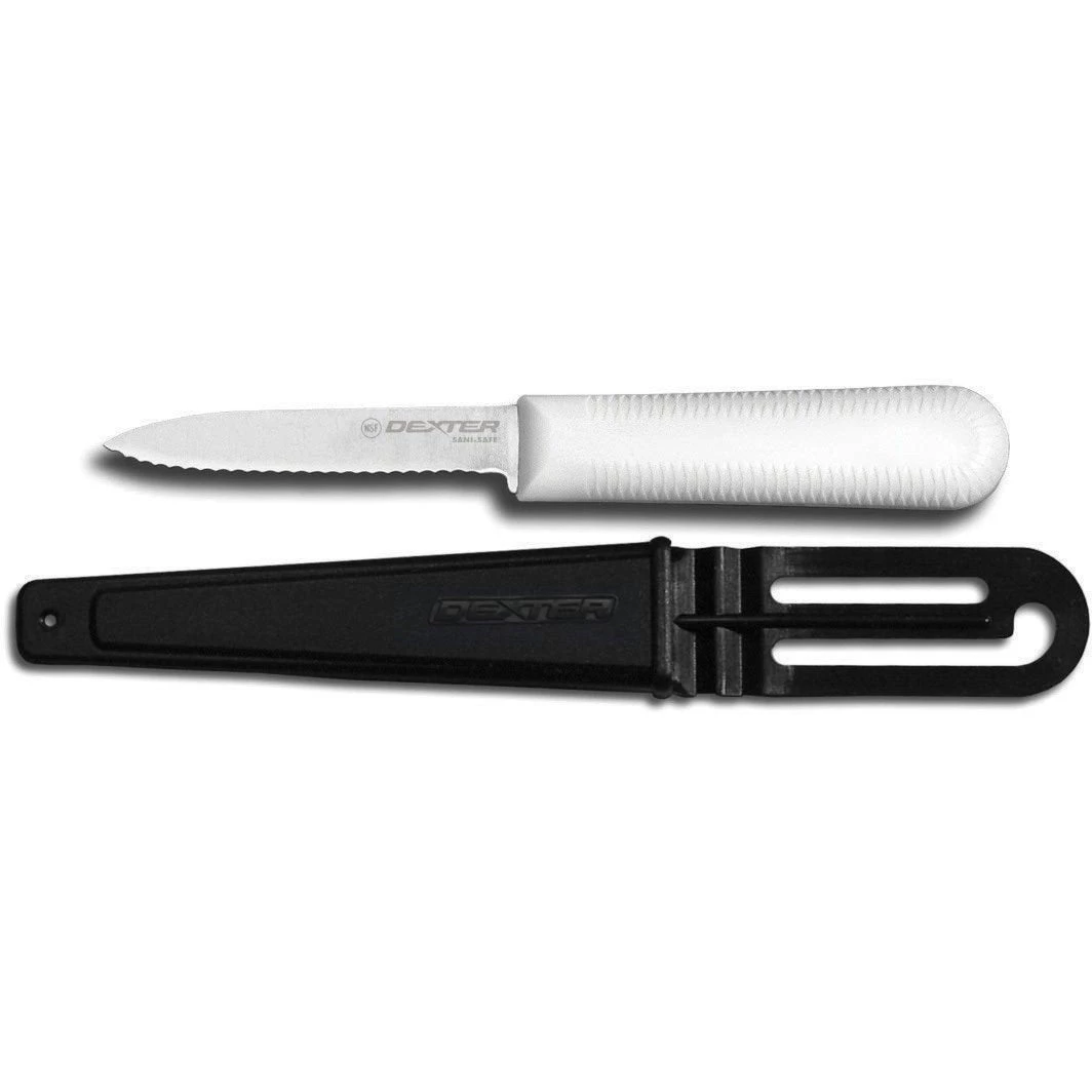 The Sani-Safe® product line offers the foremost standard for professional cutlery. A textured, slip-resistant, easy-to-clean polypropylene handle withstands both high and low temperatures. An impervious blade-to-handle seal provides the utmost sanitary performance. Dexter scalloped blades are manufactured from proprietary DEXSTEEL™ stain-free, high-carbon steel and are individually ground to create specially designed scallops forming multiple sharp cutting edges. The points of the scallops easily break through tough rinds and pierce the firm skin of fruits and vegetables and also protect the sharp cutting edges. After breaking through the tough outer surface, the curved scalloped edges slice through soft interiors without damaging them. Made in USA. Items marked with the NSF logo are NSF Certified.