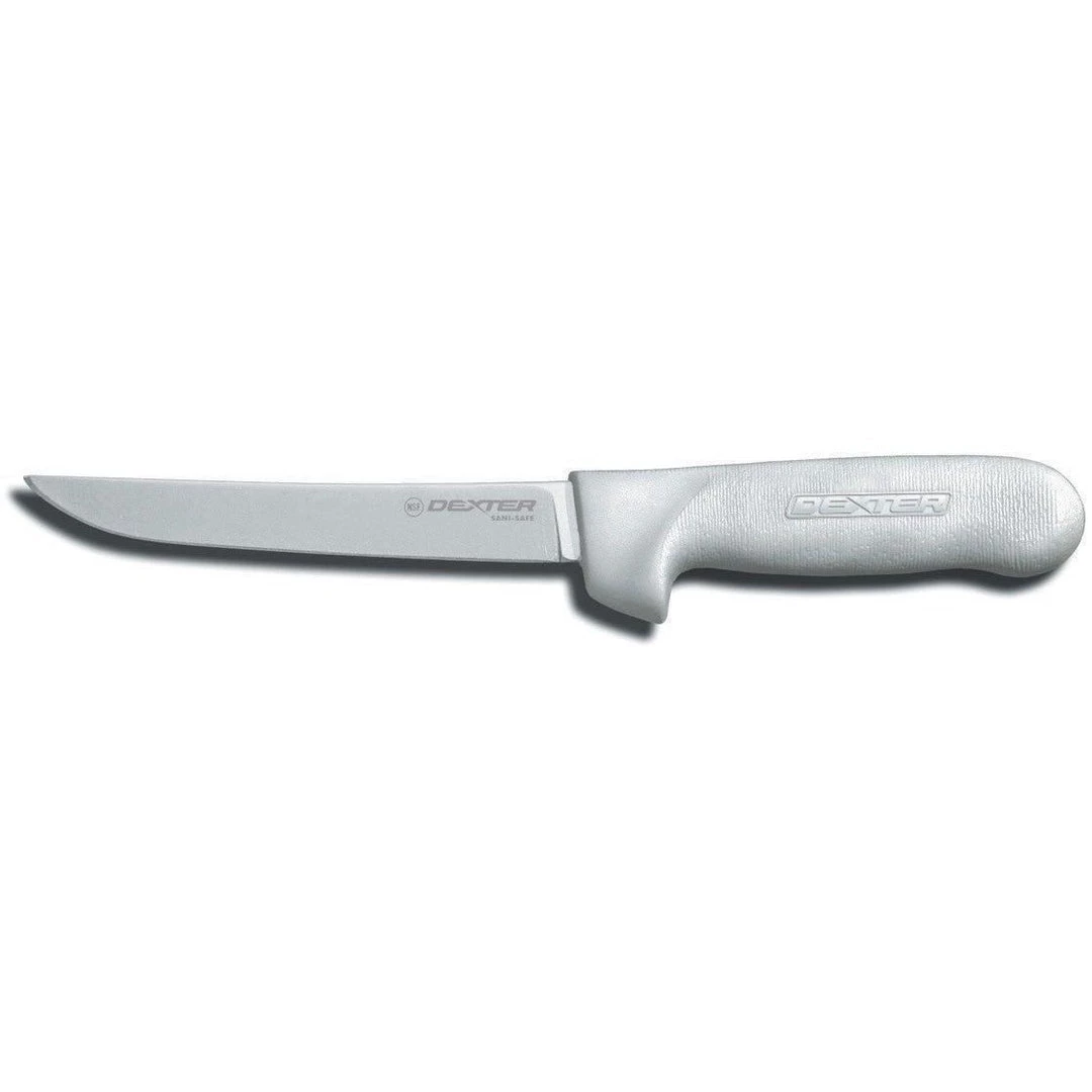The Sani-Safe® product line offers the foremost standard for professional cutlery. A textured, slip-resistant, easy-to-clean polypropylene handle withstands both high and low temperatures. An impervious blade-to-handle seal provides the utmost in sanitary performance. Blades are manufactured from proprietary DEXSTEEL™ stain-free, high-carbon steel, are individually ground and honed, and excel in commercial use. Made in USA. Items marked with the NSF logo are NSF Certified.