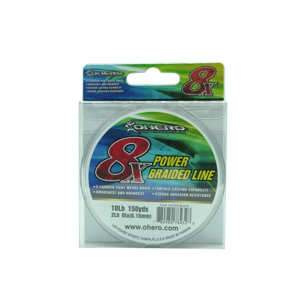 Using innovative technology OHERO 8X power braided has the roundest and smoothest braided line at the market. The precision braided machine makes this 8X carrier heavy, tight weave, the braided line to be strong, resist abrasion, and no memory. The casting capability is superior, it casts much farther. It comes in Black, Red and Forest Green color in 150 yds, 300 yds, and 2000 yards spool.Â