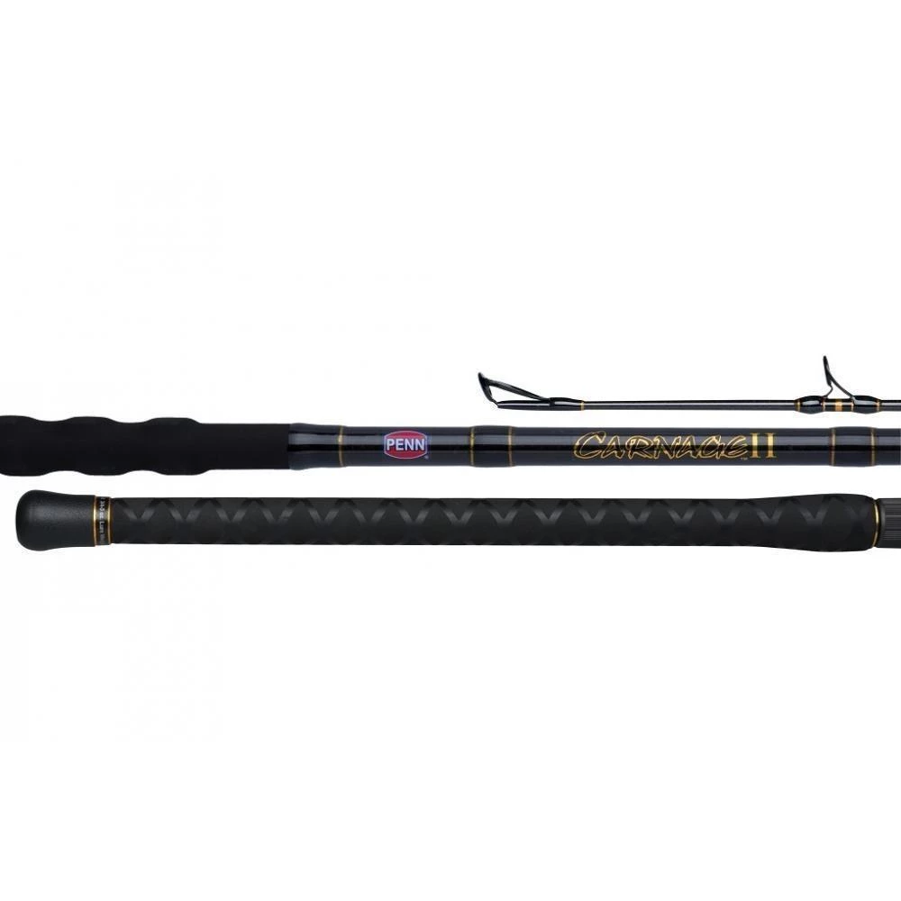 PENN® Carnage II rods are a new generation of super light but powerful rods. Engineered to be fished with braided fishing line these rods can take the extra strain created by braided lines and will punish any game fish. The new SLS3 blank construction provides a very thin diameter blank which overall makes for a smaller and lighter rod that is more ergonomic.