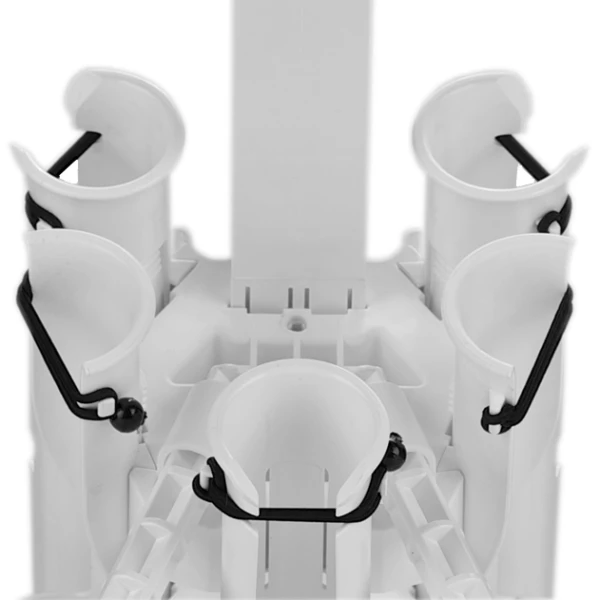 When not in use bungees can be hooked around the back of the rod holder to avoid snags while loading rods. When in use bungees help keep rods firmly in place and rod tips evenly spaced to avoid line tangles and rod damage.
