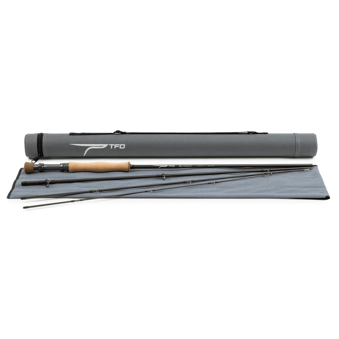 The LK Legacy is constructed with high modulus carbon fiber material and finished in a matte grey color. Componentry includes fully anodized up-locking reel seats with angled hoods and braided carbon fiber inserts. Black frame, stainless steel stripping guides and anodized, double-foot, stainless-steel snake guides provide durability and minimize weight. The Flor grade full cork grips are comfortably contoured and uniquely contrasted. From a delicate 3-weight to the very popular 8-weight, 11 models allow the LK Legacy series to perfectly match a broad range of conditions, techniques, and species. All models feature alignment dots color coded by line weight and LK Legacy rods come packaged in a labeled rod sock and a TFO rod tube.